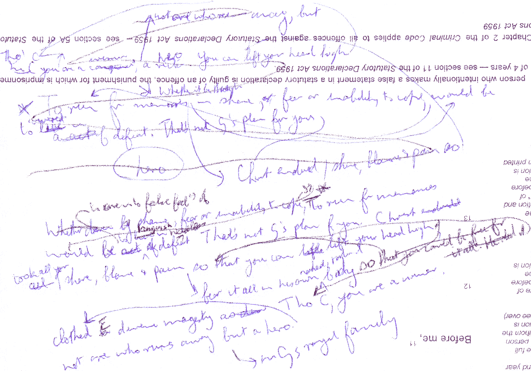 I woke in the middle of the night with a few words forming in my mind. I knew that if I didn’t jot them down they would soon fall out of my mind, never to be found again. So I got up and grabbed a scrap of printed paper that had some white space. The top four or five handwritten lines of what appears below is my first attempt. I ended up changing it so much that I decided to start afresh by copying it underneath in an easier-to-read form so that I could make further revisions.